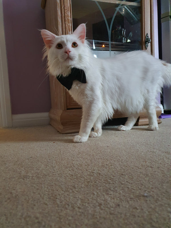 Hi I'm Luna and back in 2020 I made one bow for my (Baldur) cat because I had seen a picture that made me smile (the second picture), after making a few and posting them I got more and more people asking if I could make one for their pet. Now look at us Making accessories for pets big and small, sending parcels all over the world and spreading joy!