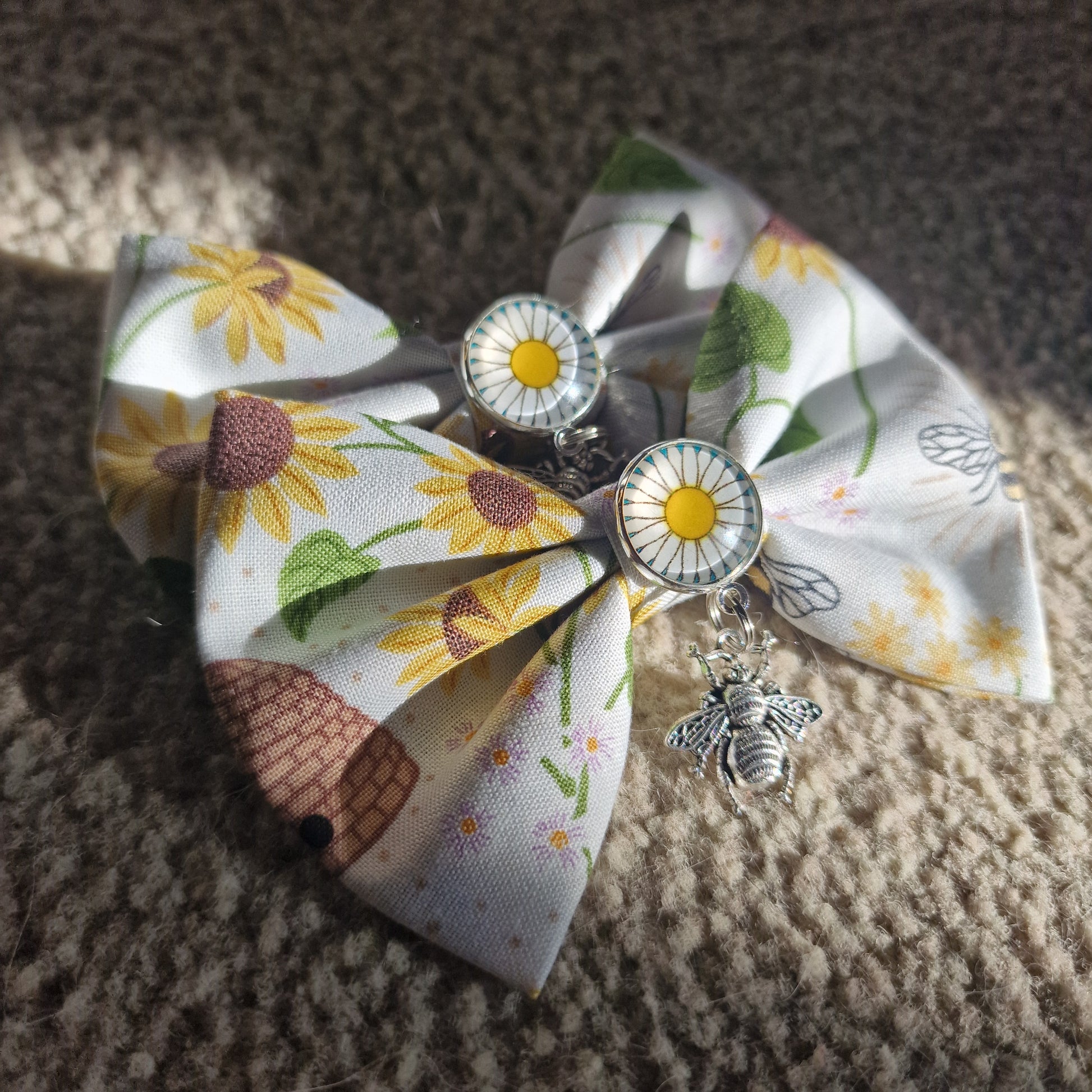 This standard size bow comes with loops for a collar but this can be changed via insta dms or email us pawsupbow@gmail.com