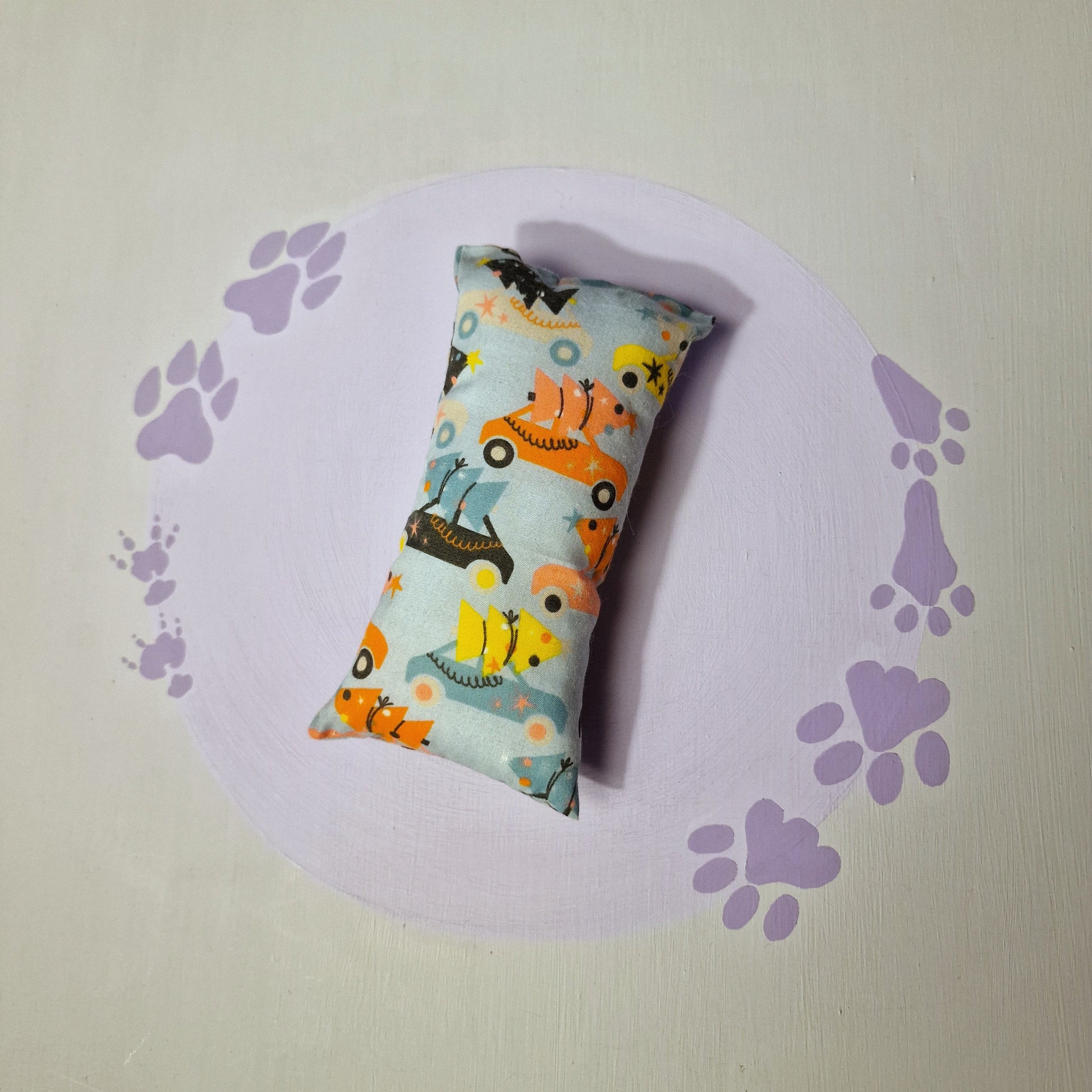 This catnip Kicker toy measures 6 inches by 2.5 inches.