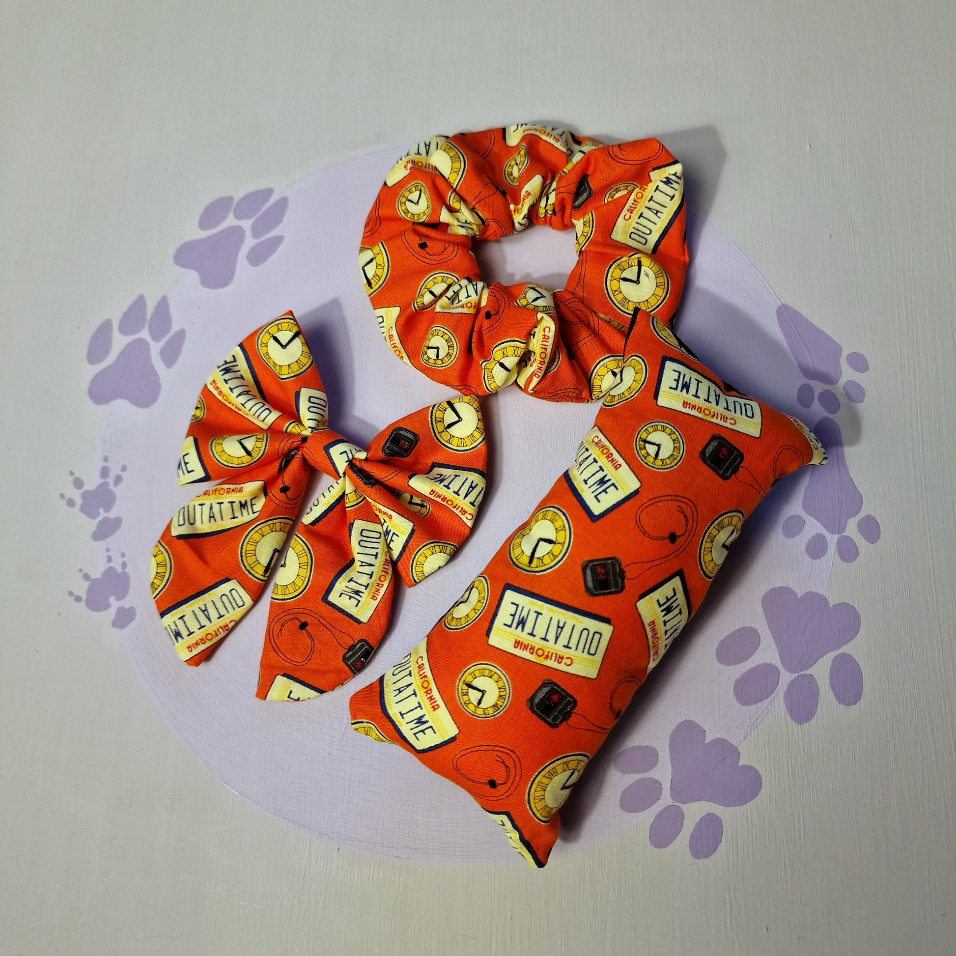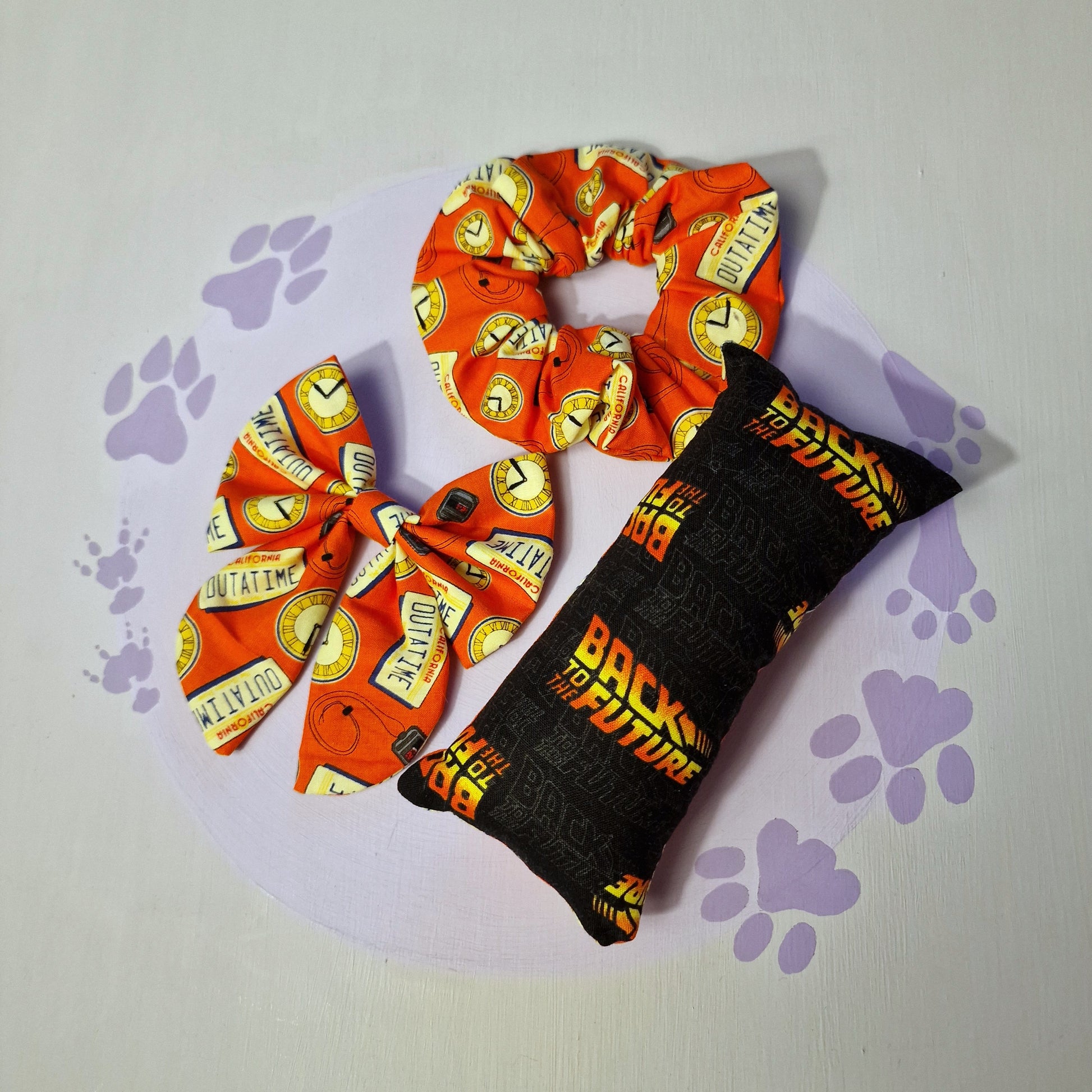 This nostalgic set includes 1 standard size sailor bow, 1 catnip kicker toy and 1 scrunchie.