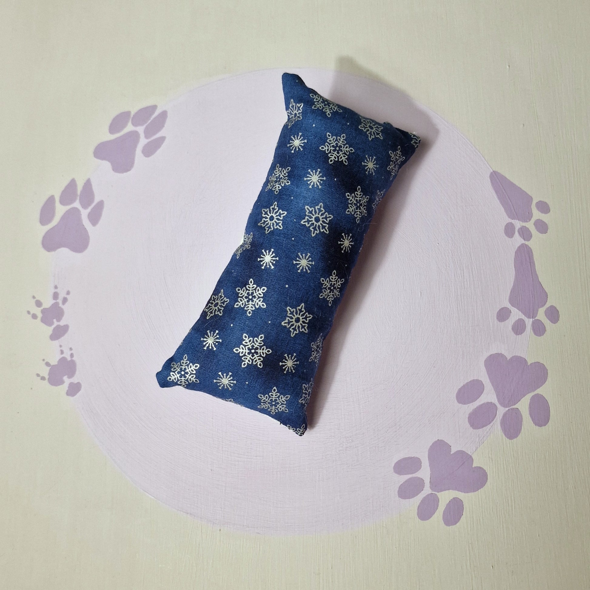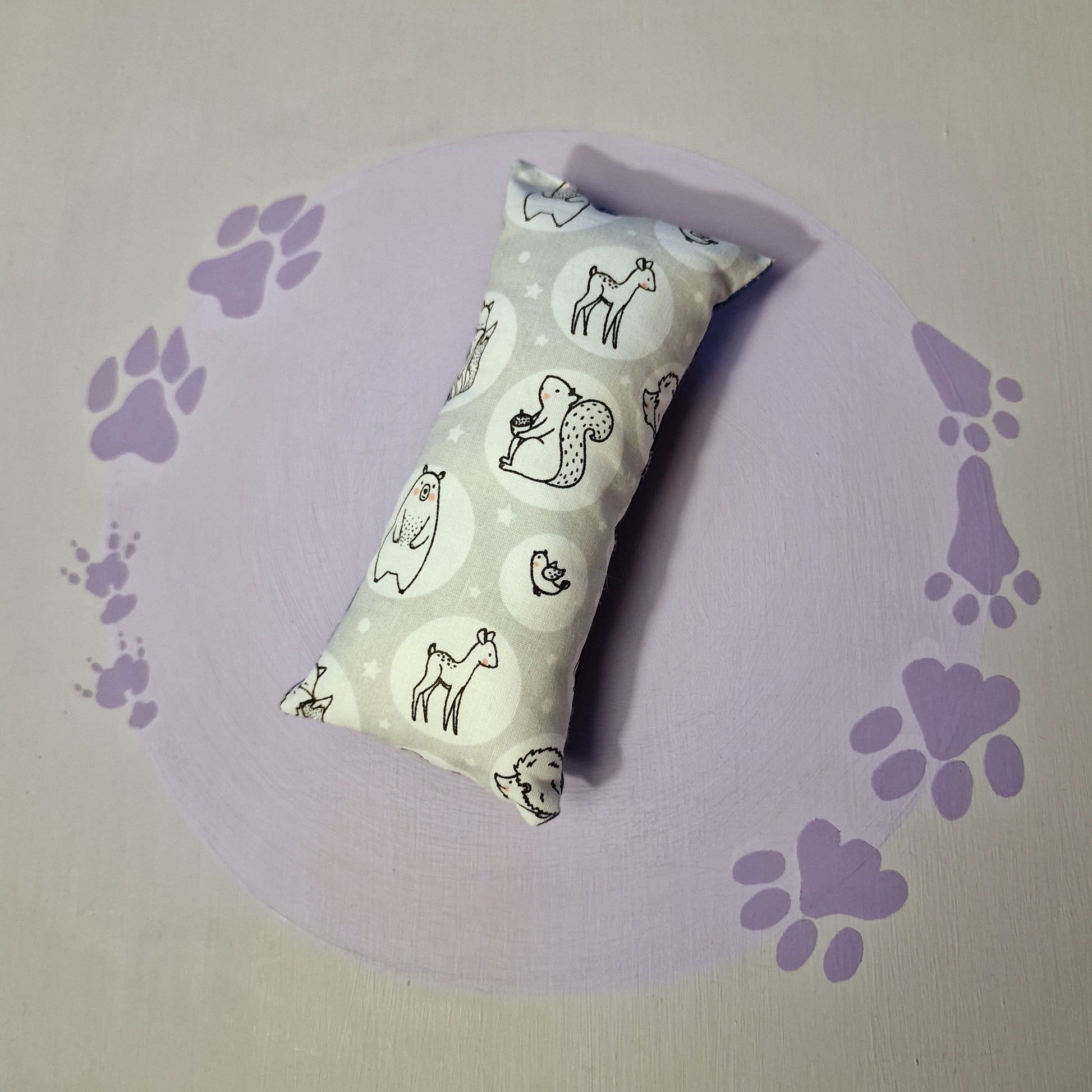 This catnip kicker toy measures 6 and a half inches by 3 inches.